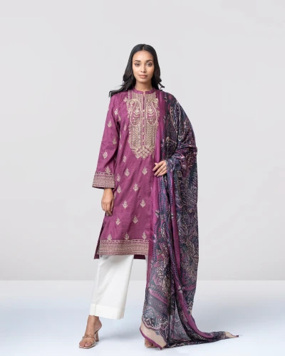 Smart Fit Embroidered Three-Piece Semi-F...