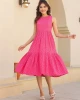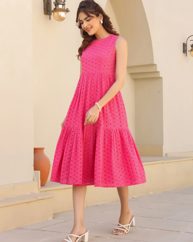 Pink Pure Cotton Schiffli Tiered Dress