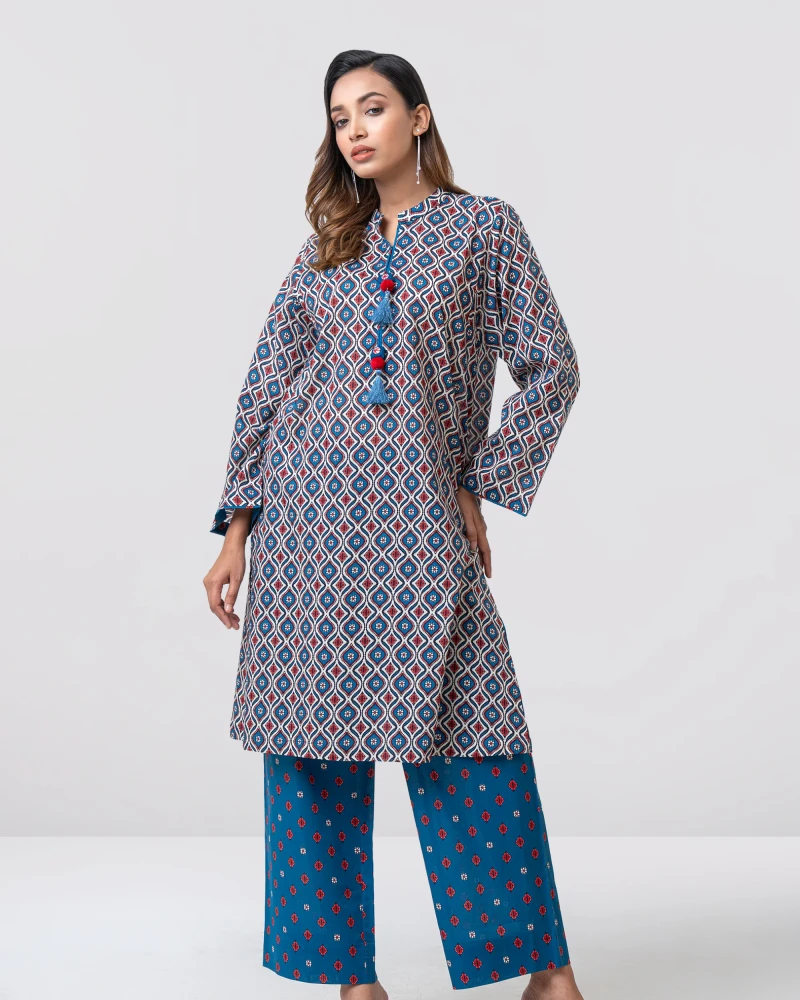 Smart Fit Printed Two-Piece Lawn with Si...