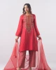 Smart Fit Embroidered Three-Piece Ethnic Set with Organza Dupatta